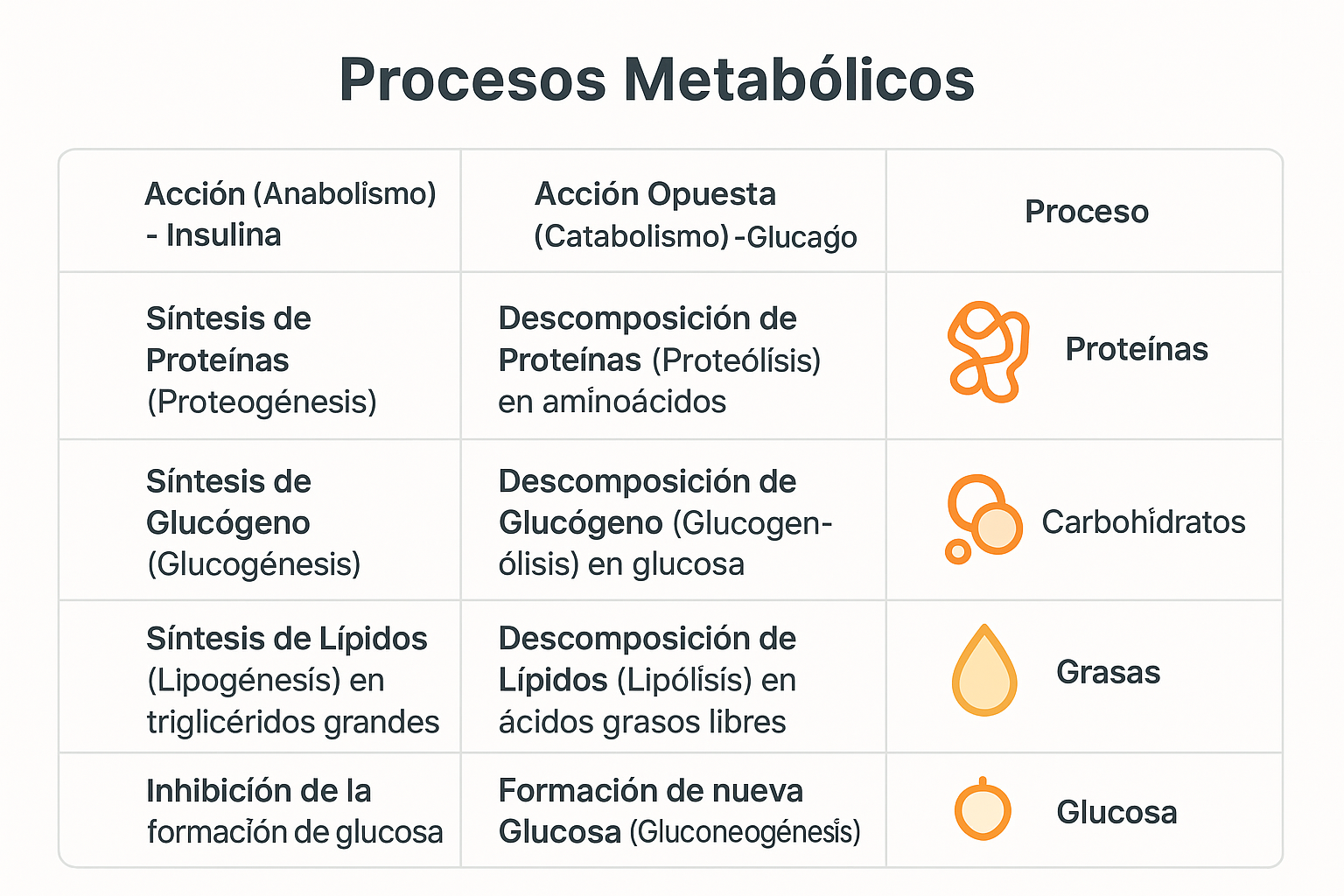 El glucagón es la hormona prototípica catabólica. Busca descomponer las moléculas complejas para generar fuentes de energía.